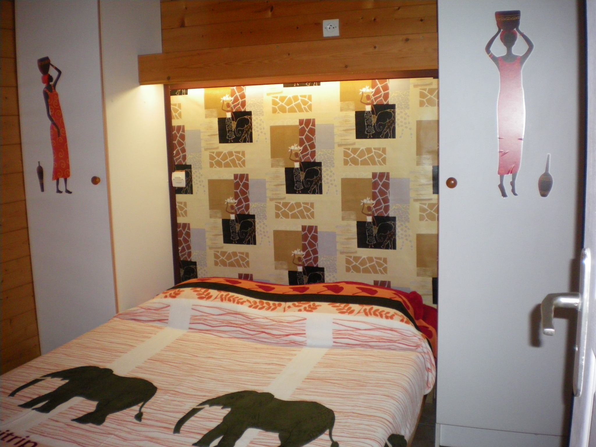 2 chambres avec placards, l’une avec un grand lit, l’autre avec un grand lit et un lit superposé, canapé convertible et Télévision dans le salon.