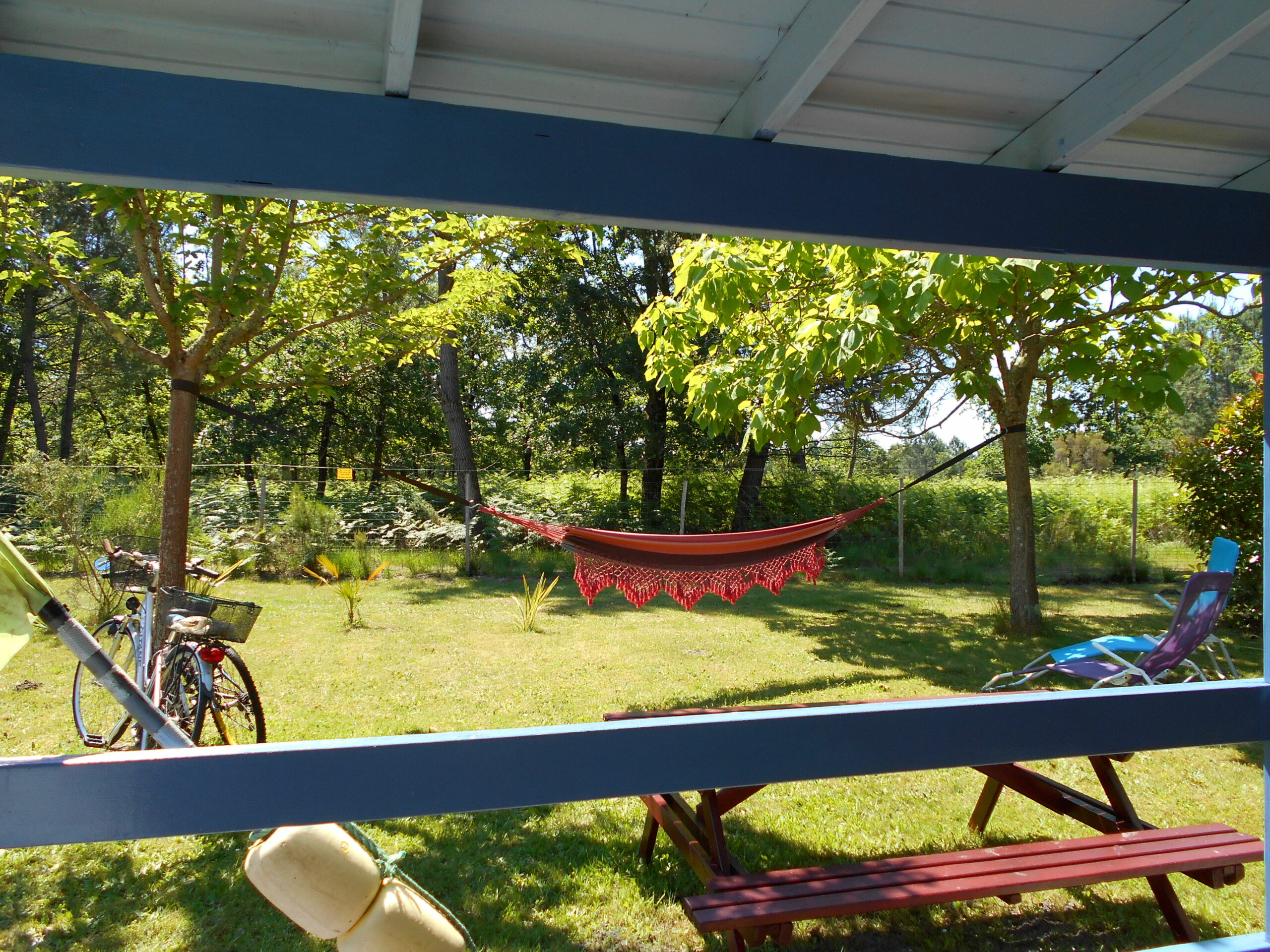 Dans le jardin : Table forestière et 4 transats